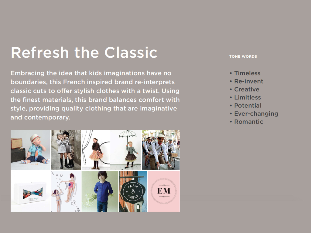 Client objective: Create a daughter and mom's clothing brand, which is French inspired but for an American life style.