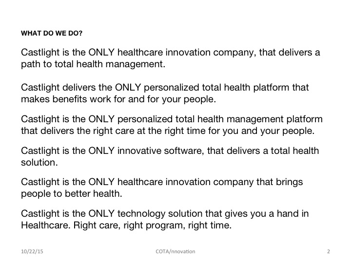 Client objective: Help Castlight to differentiate from competitors by unveiling a unique trueline and powerful brand messaging system